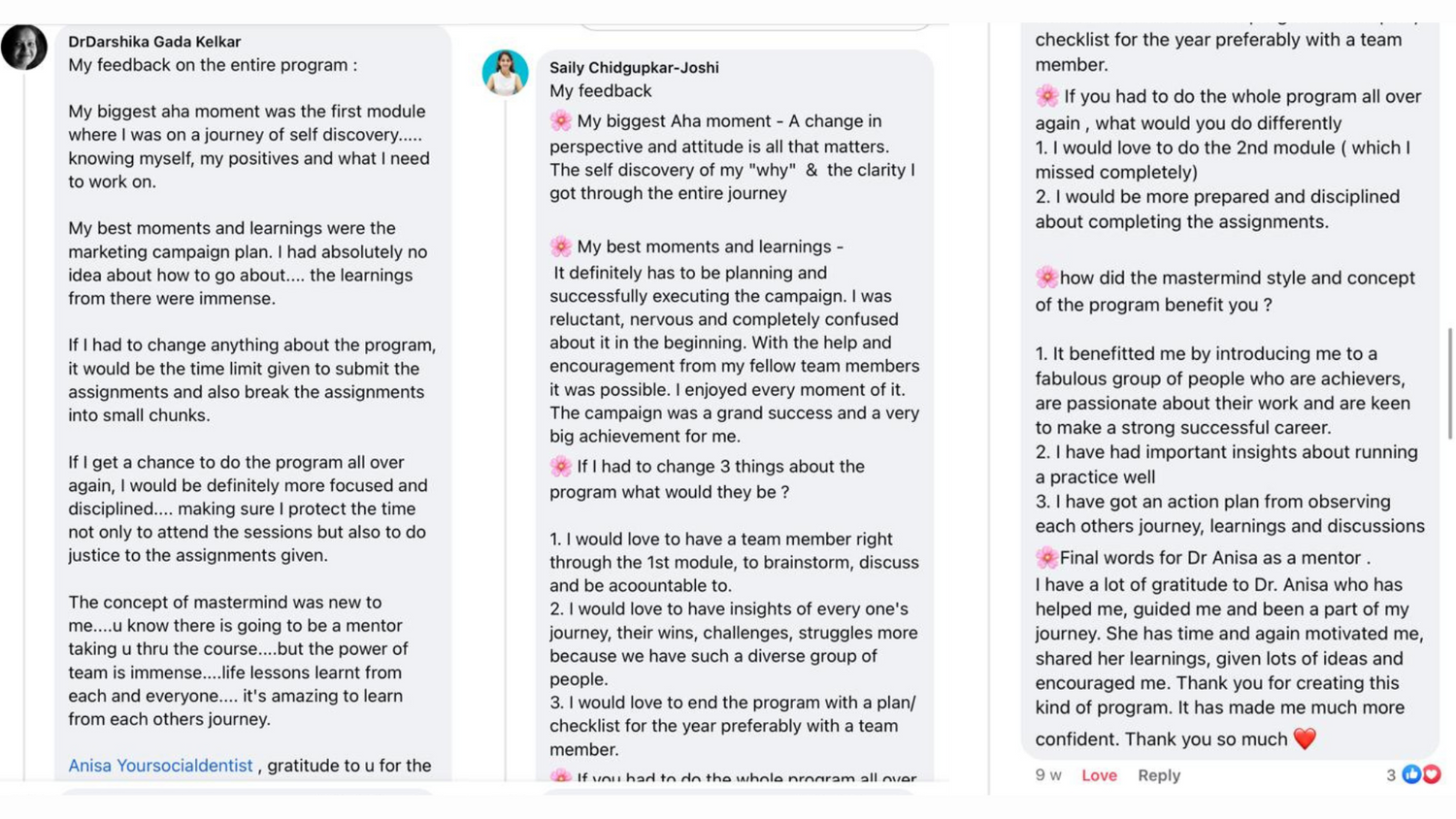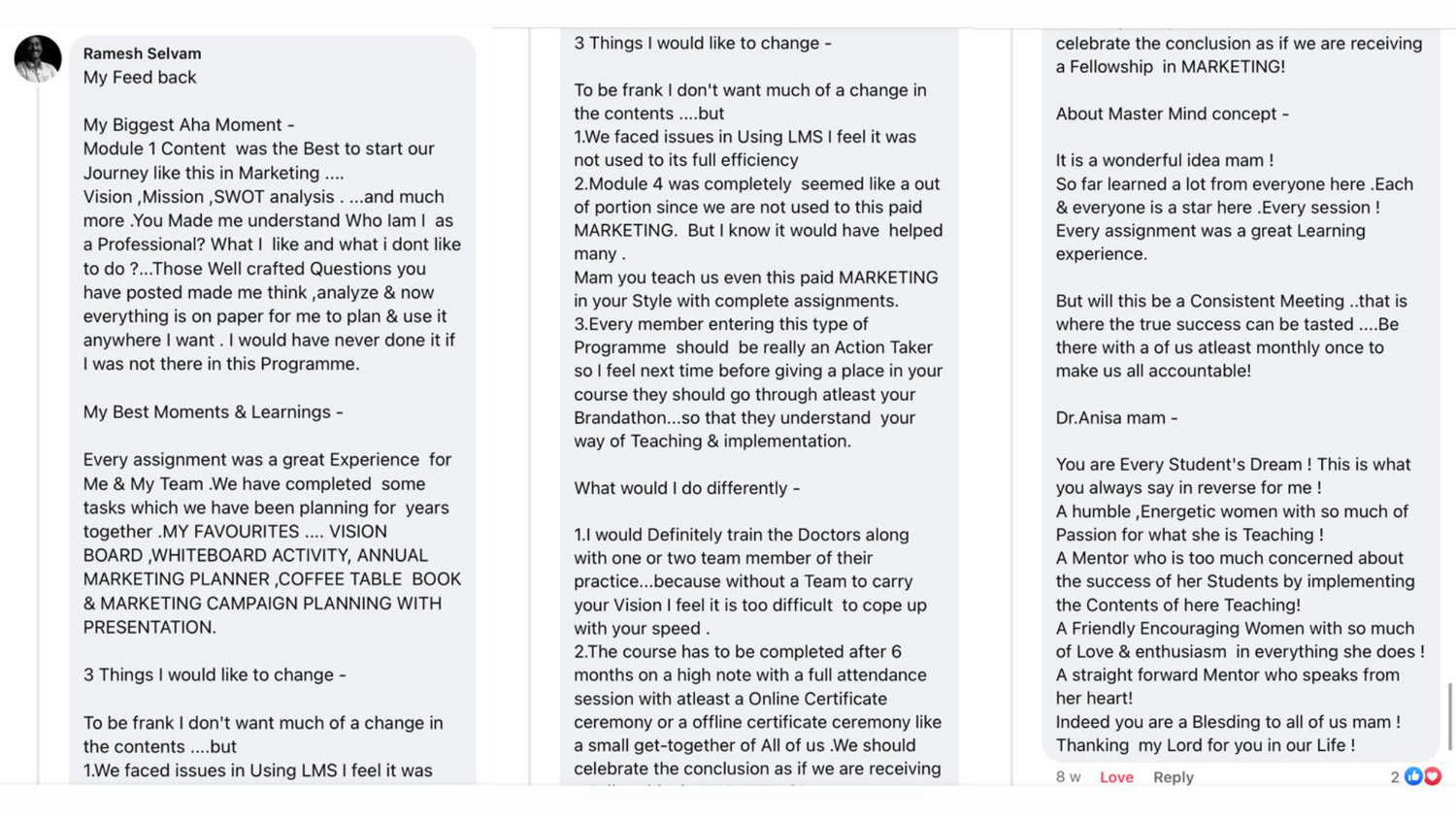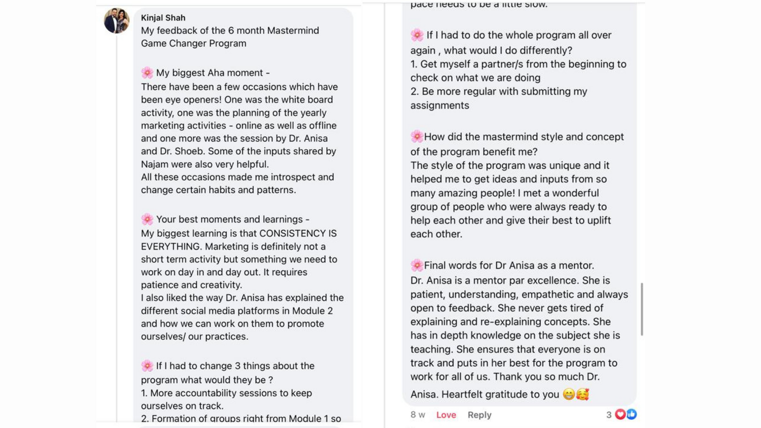 Dr. Anisa teaches you a lot of aspects about marketing and the beauty about her challenge is that its not just that 6 months you're part of, even after that period she is just a call away.