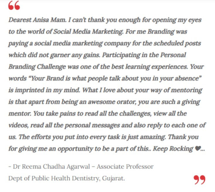 A Dentist by Profession, a Storyteller & Marketer at heart, I help build you a Strong Online Presence, so that you can do the work you love with the people you love and create an impact with meaningful work and live a Life of Freedom and Abundance.